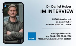 Dr. Daniel Huber, Gründer der SIMBLAST GmbH, ist dieses Jahr Referent bei der BVSW SecTec (21.04.2026-22.04.2026). Wir haben vorab mit ihm gesprochen.