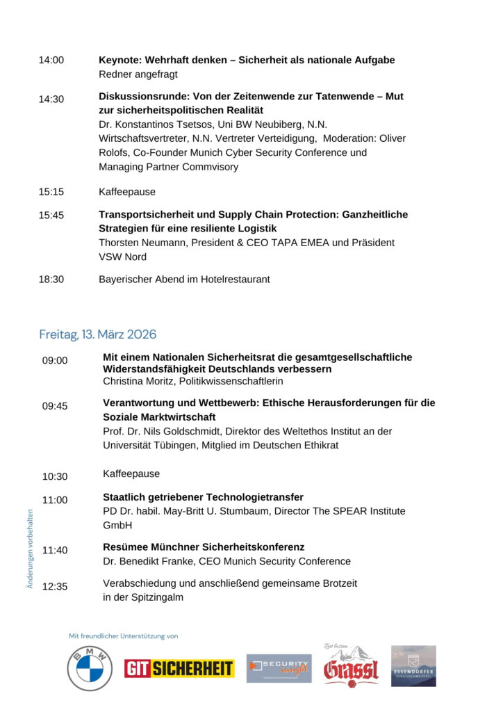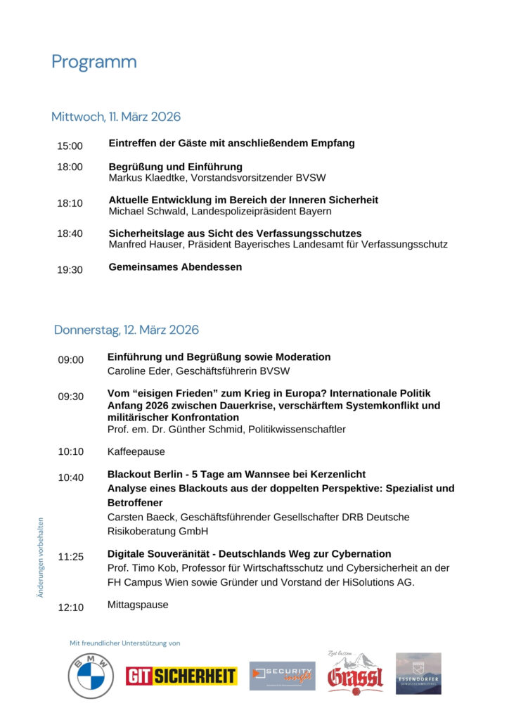 BVSW Wintertagung 2026 am Spitzingsee – Der Sicherheitsgipfel der Deutschen Wirtschaft