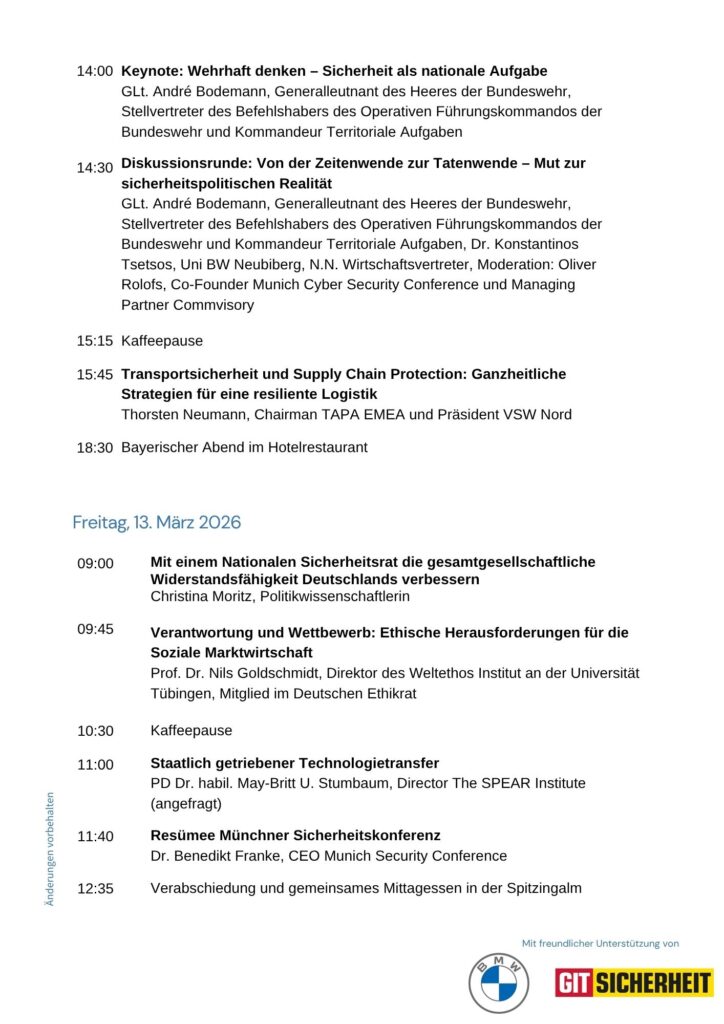 Unter dem Motto „Grenzen der Sicherheit oder Sicherheit ohne Grenzen“ erwartet Sie ein vielfältiges Programm zu aktuellen Themen aus allen Bereichen der Sicherheit.